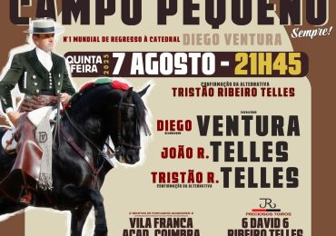 Esta quinta feira pelas 21h45, grandiosa corrida de toiros no Campo Pequeno. Volta a Lisboa Diego Ventura, após alguns anos de interregno. Frente a toiros da ganadaria de David Ribeiro …