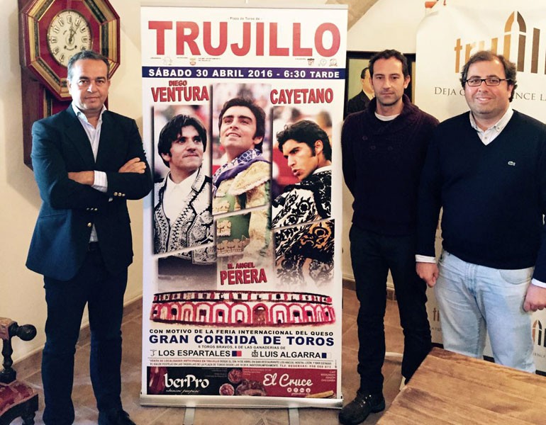 O empresário Joaquín Domínguez, da empresa Mar Toros S.L, apresentou hoje o cartel da “Feria del Queso” de Trujillo junto ao alcalde daquela localidade, Alberto Casero.
