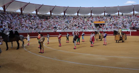 Pegam os Forcados Amadores da Moita, Montijo e Aposento do Barrete Verde de Alcochete.