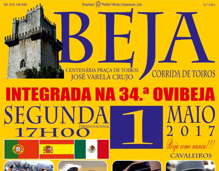 Realiza-se amanhã pelas 17 horas, em Beja a corrida de toiros inserida na 34.ª Ovibeja.