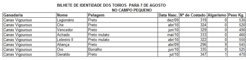 B.I. DOS TOIROS PARA HOJE NO CAMPO PEQUENO