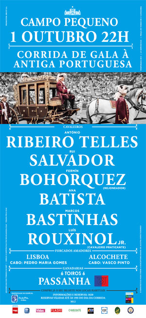 Esta corrida de touros será no próximo dia 1 de Outubro e conta com os cavaleiros António Telles, Rui Salvador, Fermin Bohorquez, Ana Batista, Marcos Bastinhas e Luis Rouxinol Jr.