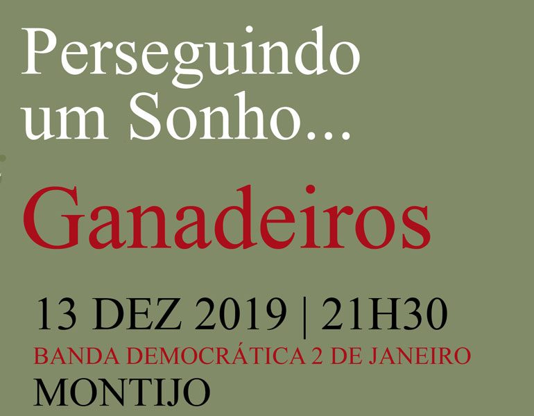 “Perseguindo um sonho… Ganadeiros” vai ter lugar na sede da colectividade Banda Democrática 2 de Janeiro, em pleno coração de Montijo, pelas 21.30h, na Rua Cândido dos Reis, nº 44 e a participação é aberta ao público.