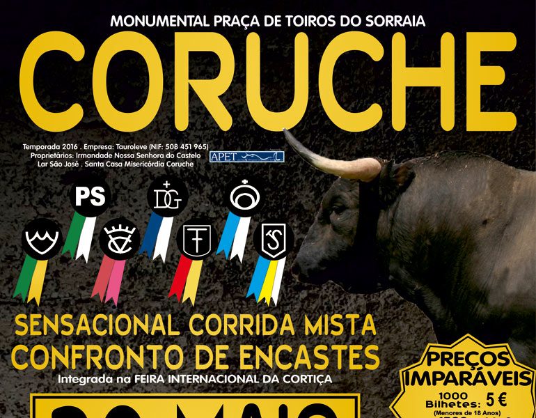 O regresso do toureio a pé a Coruche é um dos fatores marcantes desta corrida que será mista, e que contará com a competição quer no toureio a cavalo como no toureio a pé. Na arte de marialva confronta-se a alegria de Sónia Matias com o classicismo de Ana Batista, e no toureio a pé a quietude de António João Ferreira com o temple de Manuel Dias Gomes. Uma verdadeira corrida de competição!As pegas estarão a cargo dos forcados amadores de Coruche, capitaneados por Amorim Ribeiro Lopes, no ano de comemoração o 45º aniversário da sua fundação.