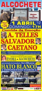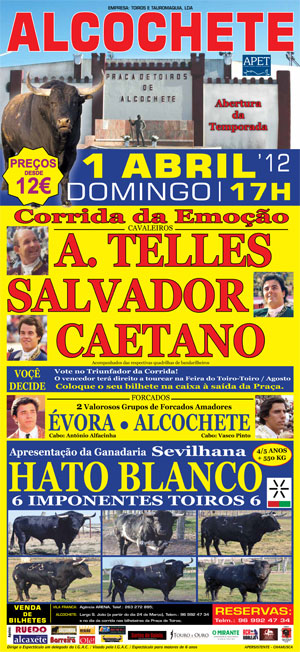 Pegam os grupos de Forcados de Évora e Amadores de Alcochete um imponente curro de toiros da ganadaria Hato Blanco.