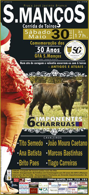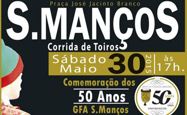 No próximo dia 30 de Maio, pelas 17 horas realiza-se em S. Manços a corrida de touros de comemoração dos 50 anos do Grupo de Forcados daquela localidade Alentejana.