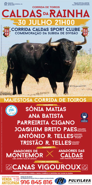 Frente a toiros da ganadaia de Canas Vigouroux, estão anunciados os cavaleiros Sónia Matias, Ana Batista, Parreirita Cigano, Joaquim Brito Paes, António Ribeiro Telles filho e Tristão Ribeiro Telles.