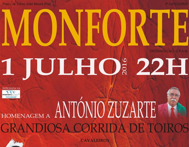 No próximo dia 1 de Julho realiza-se Monforte uma corrida de toiros de homenagem ao antigo forcado António Zuzarte.