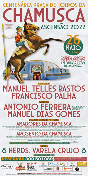 No próximo dia 26 de Maio para comemorar a Quinta Feira de Ascenção, realiza-se na Chamusca uma extraordinária corrida de toiros mista.