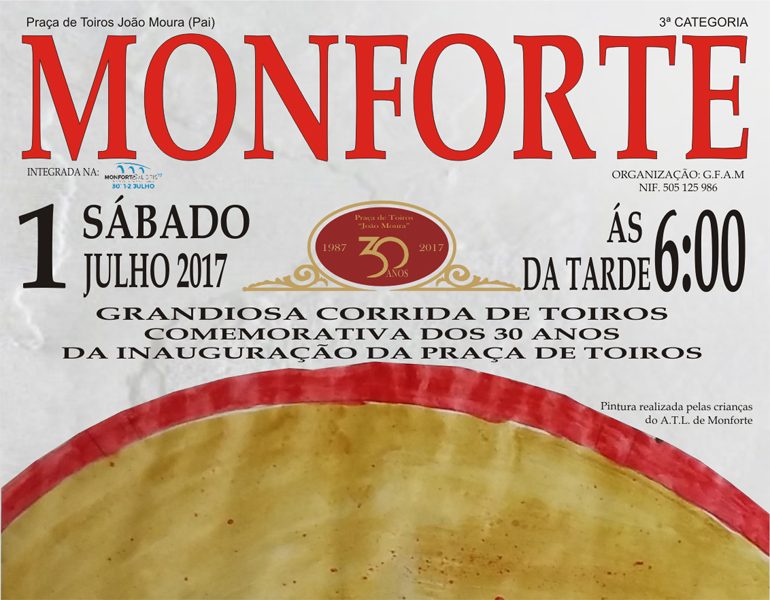 Realiza-se no próximo dia 1 de Julho em Monforte uma corrida de toiros mista, onde se comemoram os trinta anos da inauguração da praça de toiros local.
