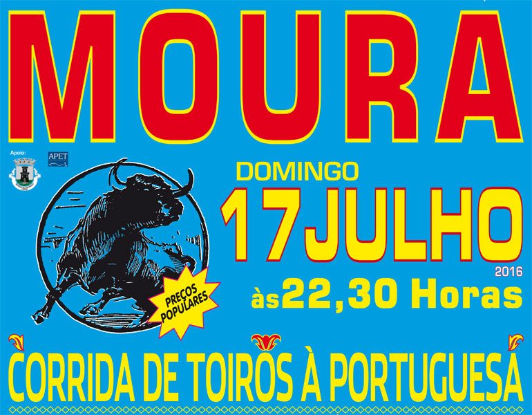 No próximo dia 17 de Julho pelas 22h30 horas haverá toiros em Moura.