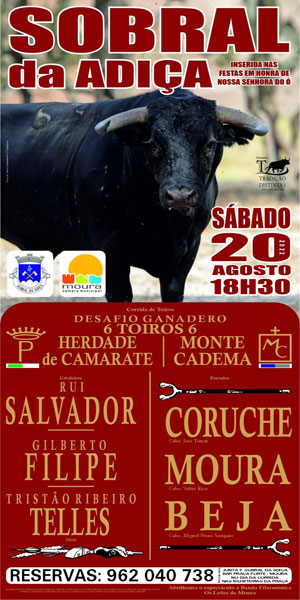 No próximo dia 20 de Agosto pelas 18h30, haverá corrida de toiros no Sobral da Adiça.
