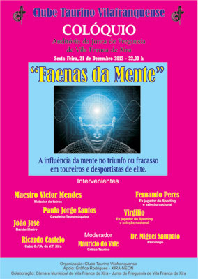 Este colóquio tem a particularidade de ser debatido por toureiros, desportistas de elite e psicólogos, em que será abordado vários aspectos relacionados com o sucesso ou insucesso devido ao fator mental, um colóquio unico e nunca realizado.