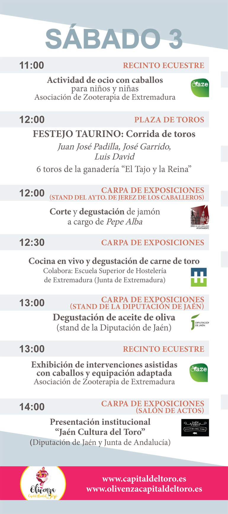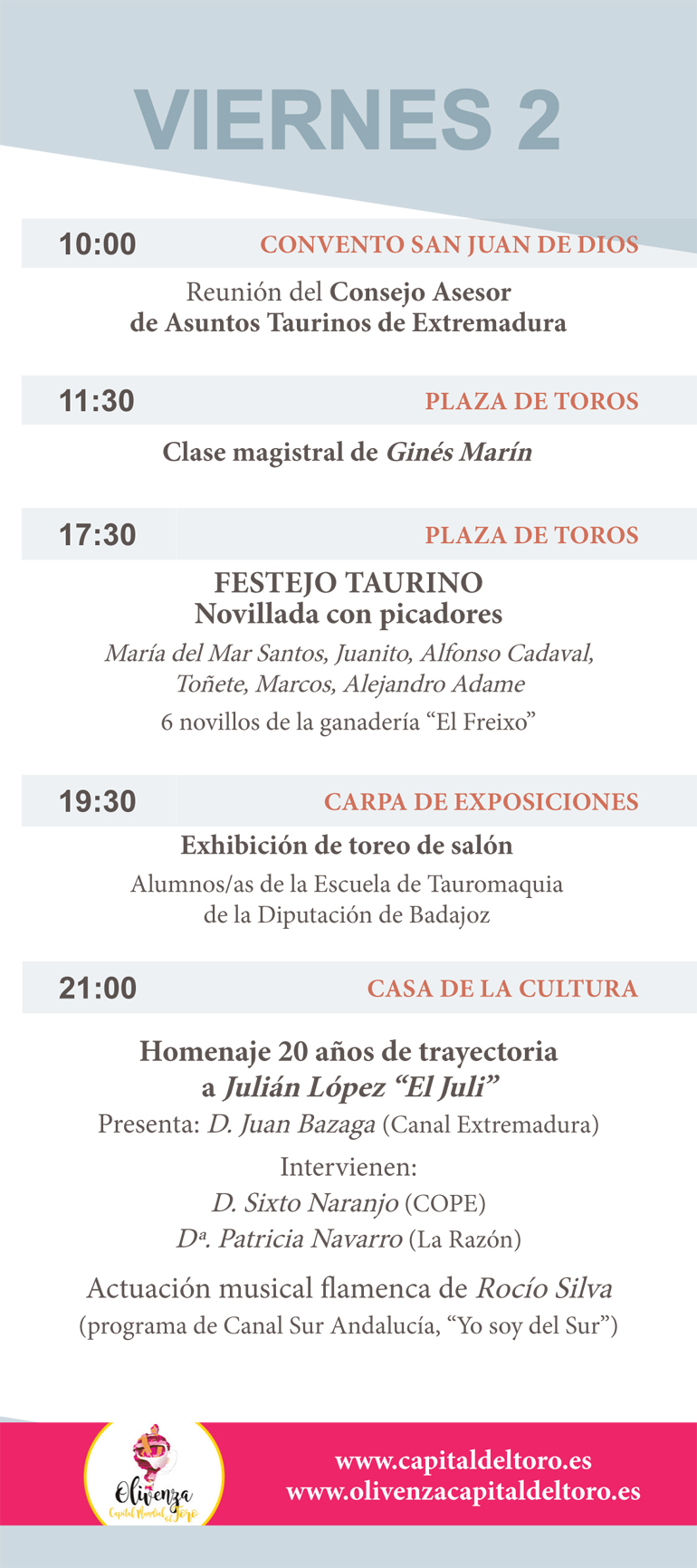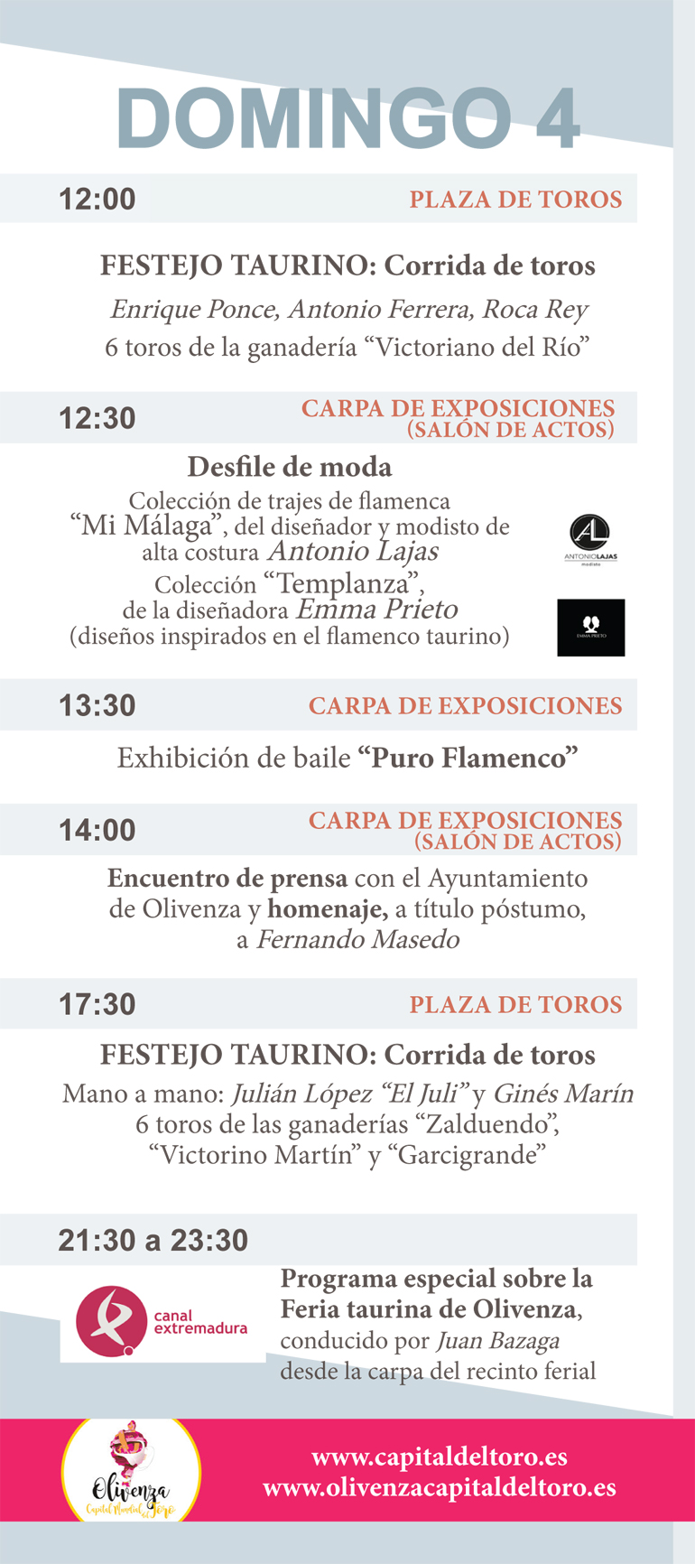 Além das quatro corridas de toiros e uma novilhada, muito mas poderá ver durante estes dias em Olivenza.