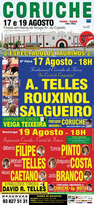 No dia 17 de Agosto pelas 18 horas, perante um curro de Veiga Teixeira actuam os cavaleiros António Telles, Luis Rouxinol e João Salgueiro.