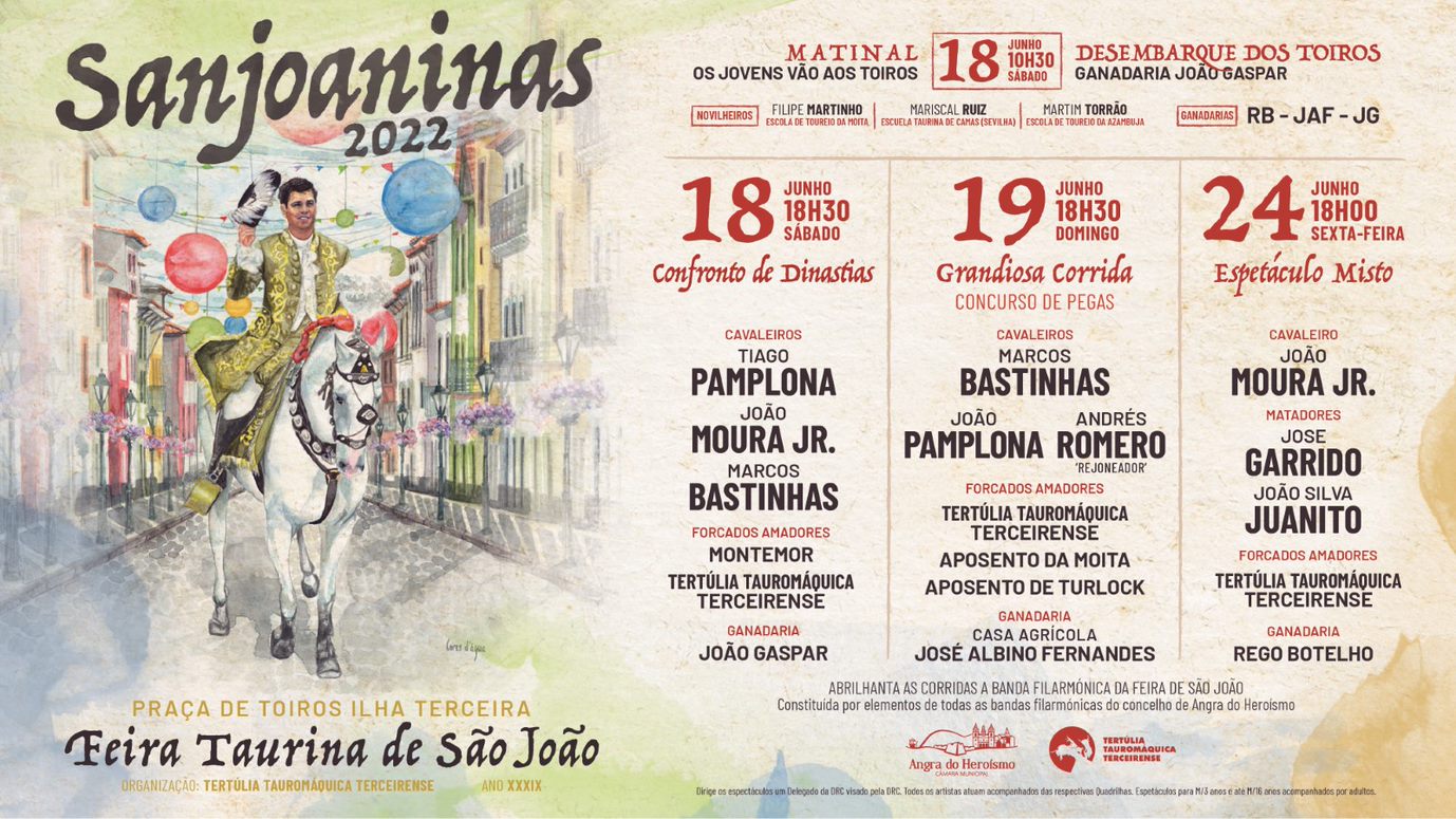 Numa edição que marcará o início das corridas de toiros nos Açores num período pós pandémico, a Feira Taurina de São João 2022 procura estimular os mais jovens a irem aos toiros, juntamente com a inovação de atividades taurinas como é o caso do desembarque dos toiros da ganadaria João Gaspar na arena da Praça de Toiros Ilha Terceira, que irá ocorrer no dia 18 de junho antes da realização do sorteio da corrida Confronto de Dinastias, e logo após uma novilhada matinal intitulada de “Os Jovens Vão aos Toiros”. Na tarde desse dia estarão em praça os cavaleiros com Tiago Pamplona, João Moura Jr. e Marcos Bastinhas, juntamente com os forcados amadores da Tertúlia Tauromáquica Terceirense e Montemor-o-Novo.