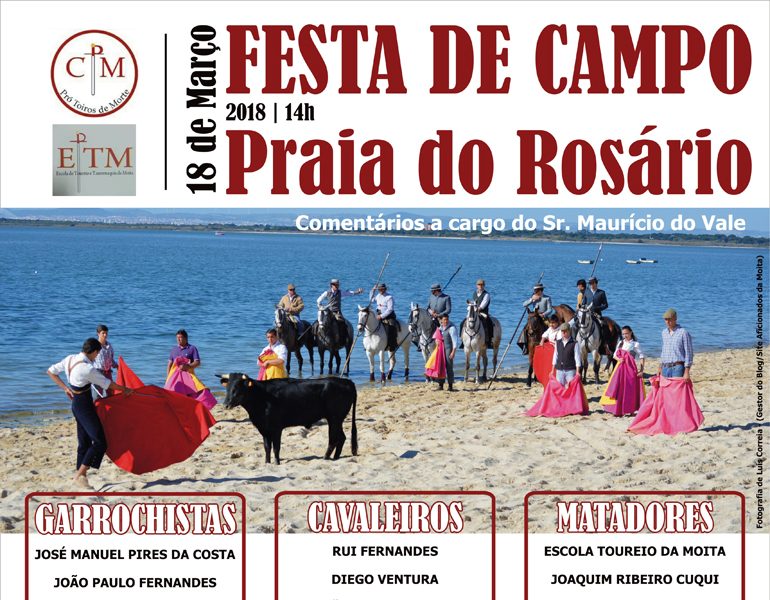 Realiza-se no próximo domingo pelas 14 horas na praia do Rosário na Moita do Ribatejo, uma festa de campo organizada pelo Clube Taurino da Moita e Escola de Tauromaquia.
