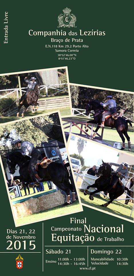 Realiza-se nos próximos dias 21 e 22 de Novembro na Companhia das Lezíras em Braço de Prata, Samora Correia, a Final do Campeonato de Equitação de Trabalho.