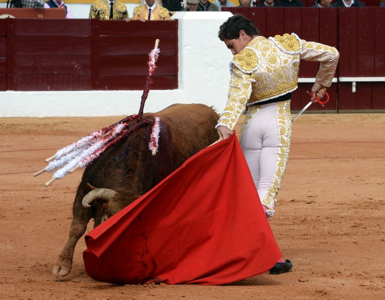 Por último, o nr 38, de 455kg, foi recebido por Cadaval com verónicas. Com um novilho que mostrava uma bonita investida, humilhando, foi com derechazos que o toureiro de Sevilha desenhou uma bonita faena, onde se ligou ao novilho, levando-o redondo e fixado, com passes harmoniosos, arrancando o “Olé” das bancadas. Foi pela esquerda, com bonitos naturais que Cadaval conseguiu o exponencial da sua lide. Uma meia estocada foi suficiente para alcançar uma orelha. (Orelha).