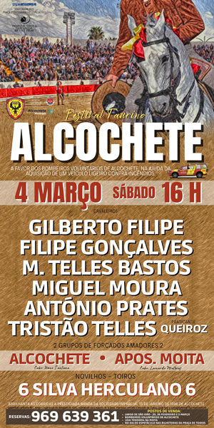 No próximo dia 4 de Março pelas 16 horas, grandioso festival taurino a favor dos Bombeiros Voluntários de Alcochete.