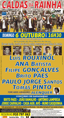 Corrida de Gala à Antiga com os cavaleiros Luis Rouxinol, Ana Batista, Filipe Gonçalves, Brito Paes, Paulo Jorge Santos e Tomás Pinto.