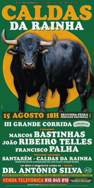 Os bilhetes já estão à venda pelo telefone 916 845 816 e em vários pontos em Caldas da Rainha e nas bilheteiras da praça de toiros nas vésperas e no dia da corrida. Abrilhanta o espectáculo a Banda Comércio e Indústria de Caldas da Rainha.