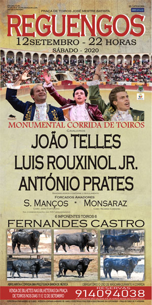 Em virtude do cavaleiro Marcos Bastinhas estar impossibilitado de atuar no próximo dia 12 de Setembro em Reguengos de Monsaraz, por ter estado em contato com uma pessoa infetada com COVID-19 o mesmo será substituído pelo cavaleiro João Telles, ficando assim o cartel composto da seguinte maneira: