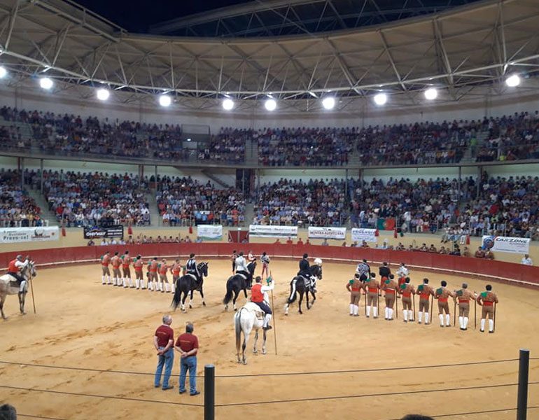 O primeiro touro da noite foi o menos luzido, mas deu a primeira de três voltas ao rejoneador de Navarra, que trouxe o seu filho para se apresentar em Portugal nesta praça esgotada do coração do Alentejo.