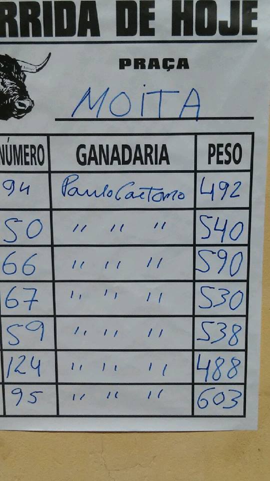 O PESO DOS TOIROS PARA HOJE NA MOITA DO RIBATEJO