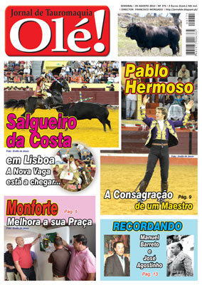Olé Jornal de Tauromaquia Nº 275 – Nas bancas dia 29 de Agosto – Quarta-Feira