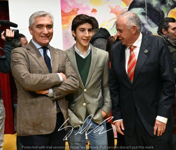 O Presidente da Junta de Extremadura, D. Guillermo Fernández Vara, o alcalde de Olivenza, D. Manuel J. González Andrade, e vicepresidente tercero de Diputación y Diputado Tauromaquia, D. Ramón Ropero e o representante da empresa Ruedo de Olivenza D. José Cutiño.