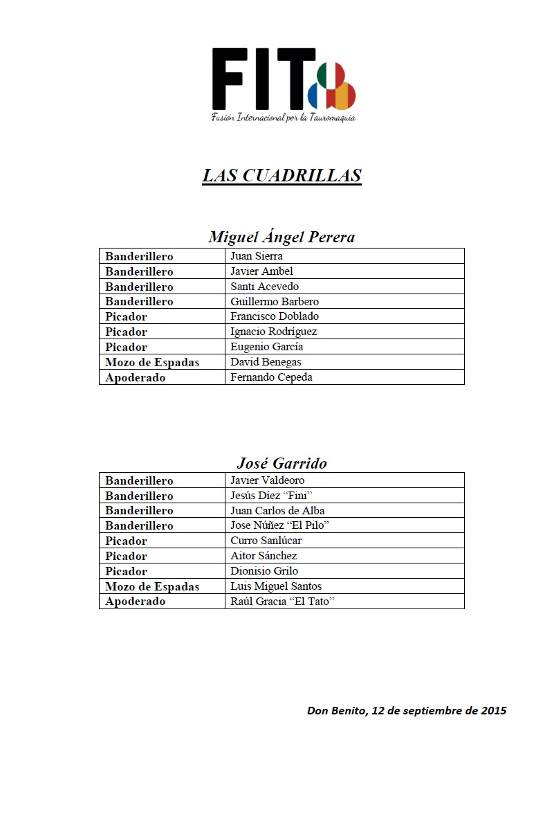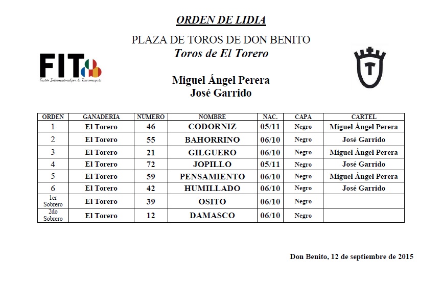 ORDEM DE LIDE PARA O MANO-A-MANO HOJE EM DON BENITO