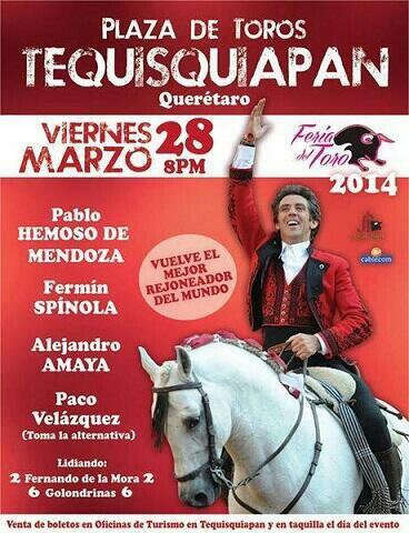 A tauromaquia portuguesa ficará mais rica no dia de hoje. A partir das 20:00 horas mexicanas, Portugal contará com mais um matador de toiros – Paco Velásquez, numa corrida que terá lugar na Praça de Toiros de Tequisquaiapn, e contará com a presença de Alejandro Amaya – grande apoio da carreira do jovem português naquelas terras -, Fermin Spínola e Pablo Hermoso de Mendonza.