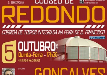 Realiza-se no próximo dia 5 de Outubro pelas 17h30 a tradicional corrida de toiros inserida na Feira de S. Francisco. Frente a toiros da ganadaria de Dias Coutinho estão anunciados …