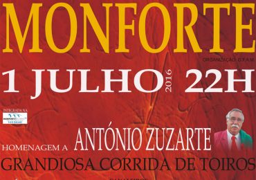 No próximo dia 1 de Julho realiza-se Monforte uma corrida de toiros de homenagem ao antigo forcado António Zuzarte. Frente a toiros da ganadaria da Quinta do Mata-o-Demo, actuam os …