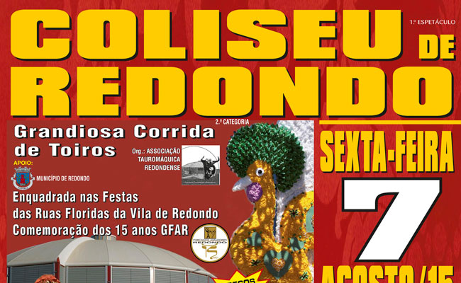 No próximo dia 7 de Agosto, pelas 22 horas haverá toiros no Redondo. Toiros da ganadaria de S. Martinho, para os cavaleiros Marcos Bastinhas, João Telles e Miguel Moura. Pega …