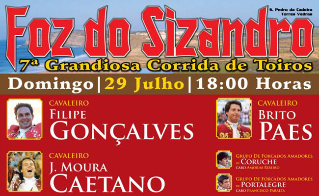 7.ª Grandiosa Corrida de Toiros na Foz do Sizandro, no próximo dia 29 de Julho pelas 18 horas. Cartel composto pelos cavaleiros Filipe Gonçalves, Brito Paes e Moura Caetano. Pegam …