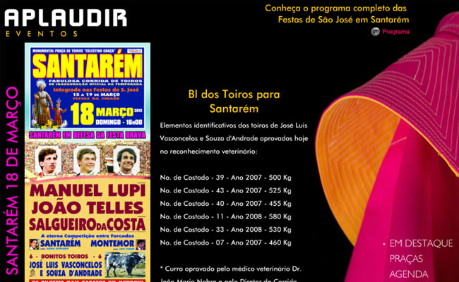 Com o arranque oficial da temporada para a empresa Aplaudir de João Pedro Bolota, a emprsa estreia também hoje o seu sitio na internet, em http://www.aplaudireventos.com. Neste site o aficionado …
