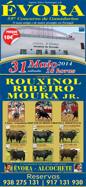 Hoje pelas 18 horas na Arena D` Évora realiza-se o 55º concurso de ganadarias.