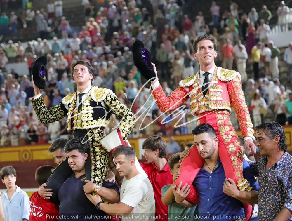 Fotografia Roca Rey e Gines Marin triunfam em Badajoz Badajoz 24/6/2023Ganadaria:Nunez del CuvilloMorante de La Puebla, silêncio e orelhaRoca Rey, Duas orelhas e orelhaGines Marin, duas orelas e rabo e duas orelhas Related