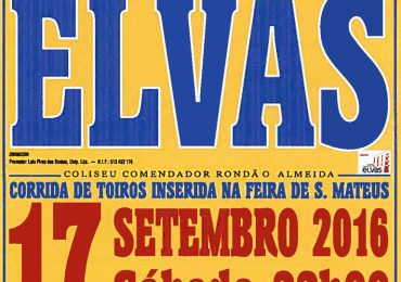 No próximo dia 17 de Setembro pelas 22 horas realiza-se em Elvas a tradicional corrida de toiros da Feira de S. Mateus. Perante toiros de António Charrua e Quinta Mata-o-Demo, …