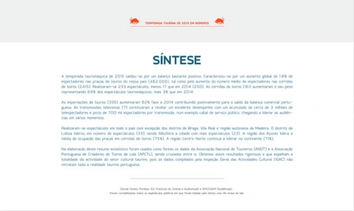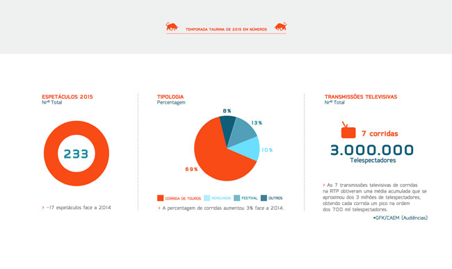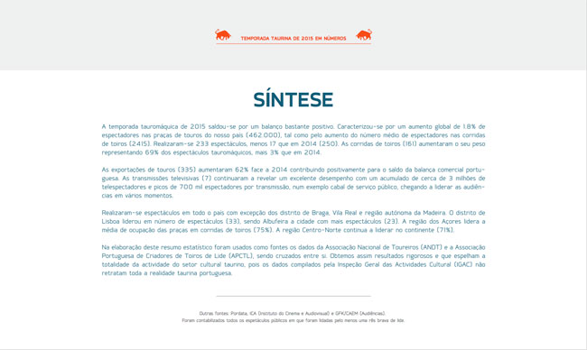 Obtemos assim resultados rigorosos e que espelham a totalidade da actividade do setor cultural taurino, pois os dados compilados pela Inspeção Geral das Actividades Cultural (IGAC) não retratam toda a realidade taurina portuguesa.