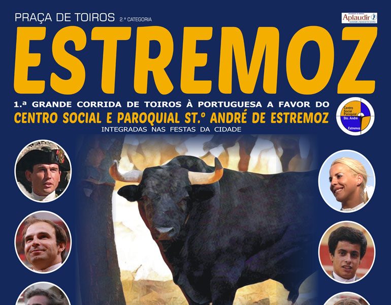 No próximo dia 3 de Setembro pelas 18 horas realiza-se em Estremoz a 1.ª Grande corrida de toiros a favor do Centro Social e Paroquial de St.º André.
