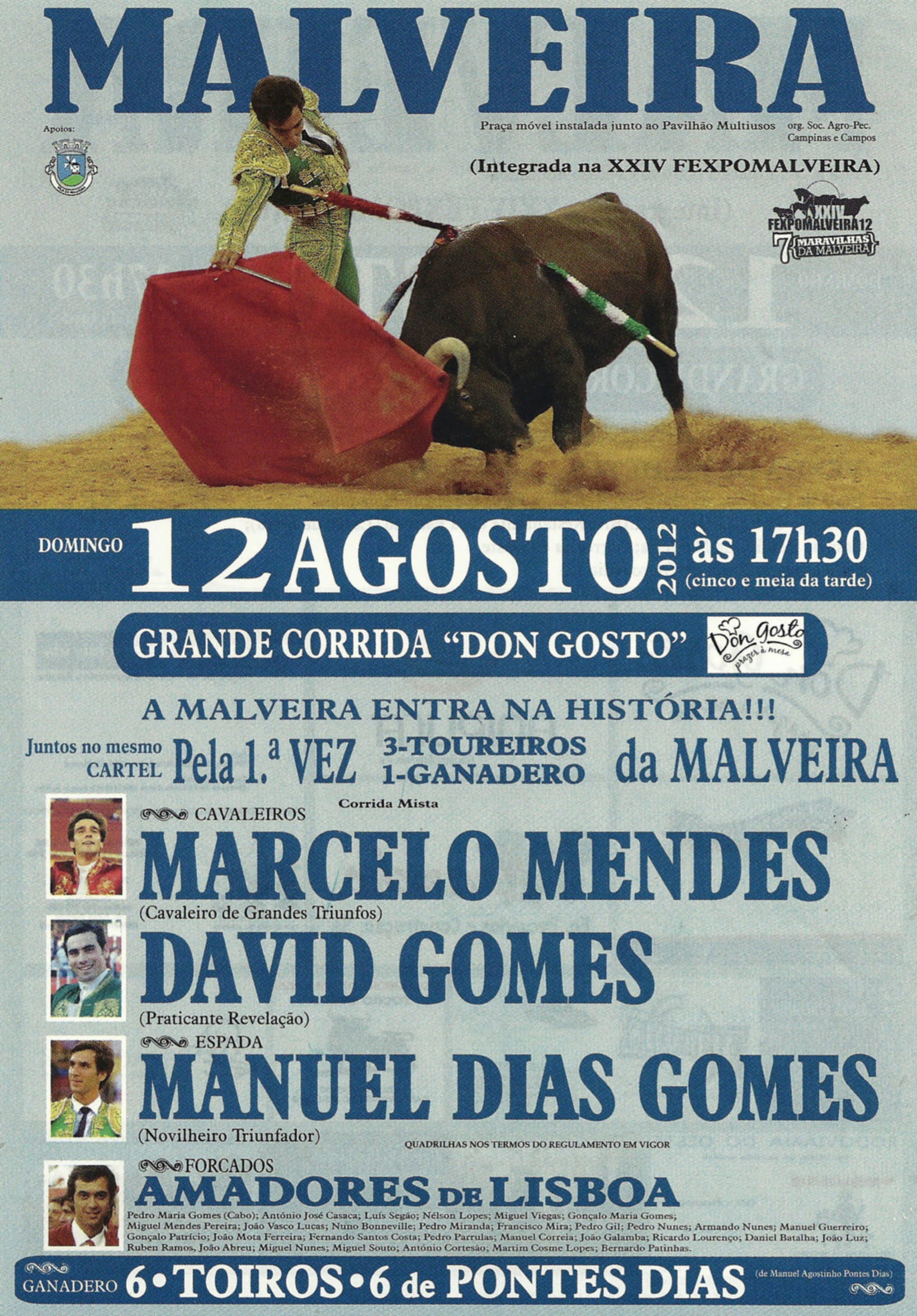 Integrada na Expomalveira no próximo dia 12 de Agosto pelas 17h30 Grandiosa Corrida de Toiros “Don Gosto”.