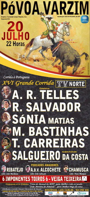 A tradicional corrida TV/Norte realiza-se sexta-feira, dia 20 de Julho, às 22 horas, na Póvoa de Varzim, estando em disputa os prémios “Casa do Pessoal da RTP” para a melhor lide a cavalo e “João Moreira de Almeida” para a melhor pega de caras.