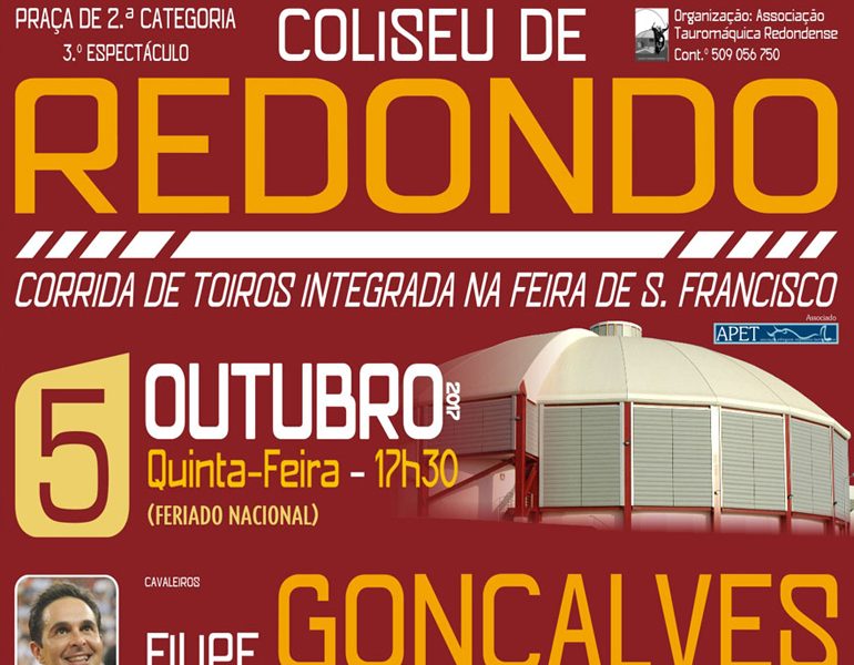 Frente a toiros da ganadaria de Dias Coutinho estão anunciados os cavaleiros Filipe Gonçalves, Miguel Moura e Luis Rouxinol Jr.