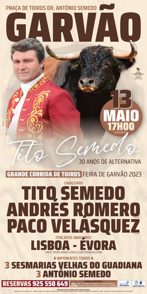 No próximo dia 13 de Maio pelas 17 horas comemora-se em Garvão os trinta anos de alternativa de Tito Semedo.