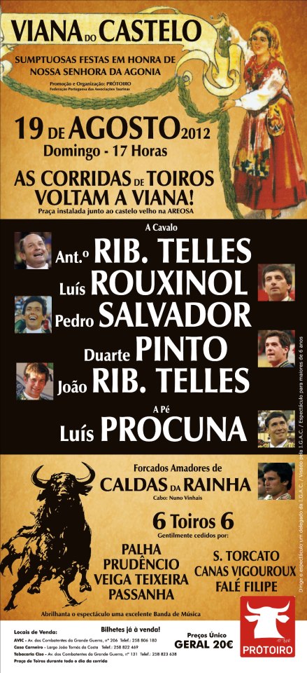 A corrida, sob a égide da Federação Prótoiro, realiza-se numa portátil instalada junto ao castelo velho na Areosa e conta com um cartel prometedor com António Telles, Luís Rouxinol e Pedro Salvador, Duarte Pinto, João Telles Jr. e o espada Luís Procuna.