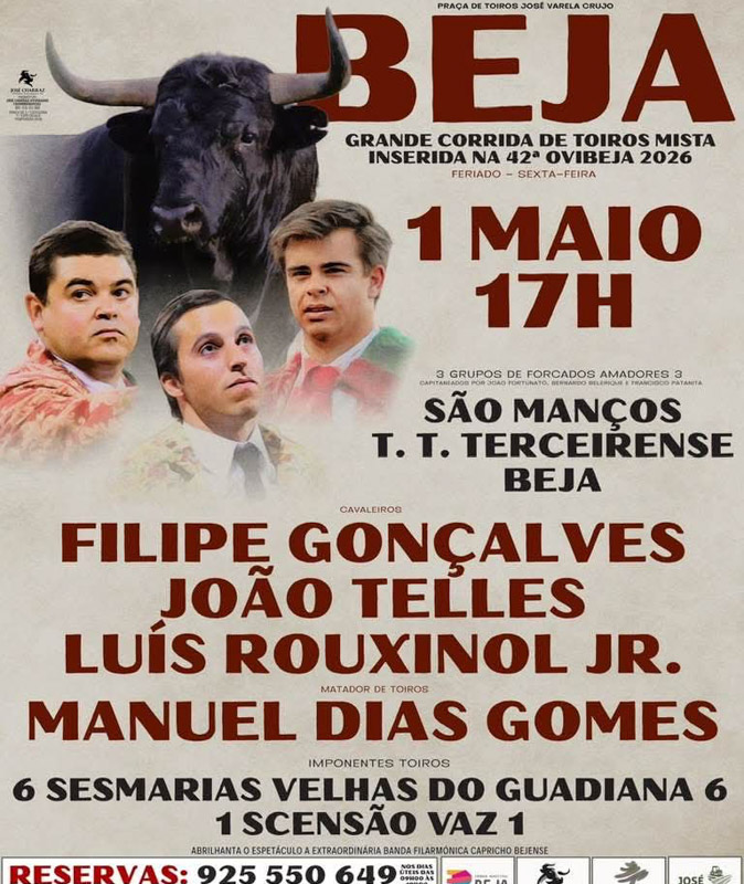 A praça de toiros José Varela Crujo, em Beja, será palco de uma grande corrida de toiros mista no próximo dia 1 de maio de 2026, integrada na 42.ª edição da Ovibeja.